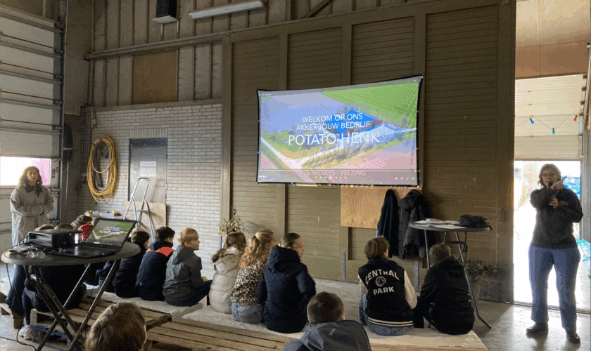 De gastles begon met een introductiefilm over het bewerken van de grond, het zaaien en het oogsten van gewassen. Dit gaf de leerlingen een snel overzicht van de agrarische cyclus en de enorme inzet die nodig is voor de voedselproductie. De boer en boerin van Potato Henk vertelden vervolgens over het bedrijf, de teelt van hun producten (o.a. met het PlanetProof keurmerk voor duurzaamheid) en het belang van een gezonde bodem.